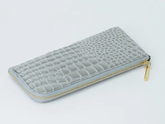 POMTATA ポンタタ CORO クロコ型押し エナメル L字ファスナー 長財布 グレー