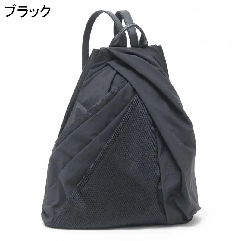 ドライな質感のナイロンにメッシュのアクセントを加え、モードなスタイリングに抜け感をプラスした、ESTINE/エスティーヌの“Favor フェイバー”シリーズ。緻密なカッティングが織りなす大胆なアシンメトリーデザインが魅力。驚くほど軽やかなボディにレザーのショルダーベルトを合わせ、品よく纏える大人のためのリュックサックです。 撥水加工も施されているので雨の日も安心。B5サイズを収納でき、普段使いに丁度いいサイズ感です。