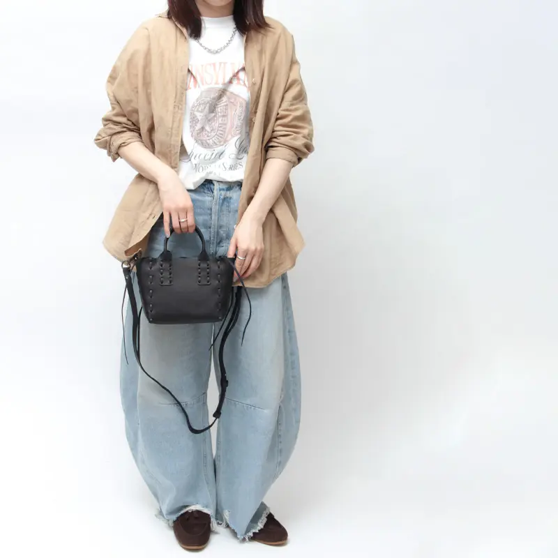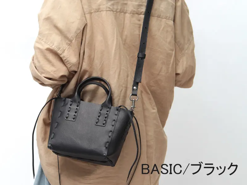 ショルダーストラップ付きの2WAY仕様のミニトートバッグ。クラフト調のディテールがシンプルながらもほどよいモード感がこなれたスタイリングに仕上げてくれます。卒入学式などのセレモニースタイルにはもちろん、デニムなどのカジュアルコーデに合わせたギャップのある着こなしもおすすめです。