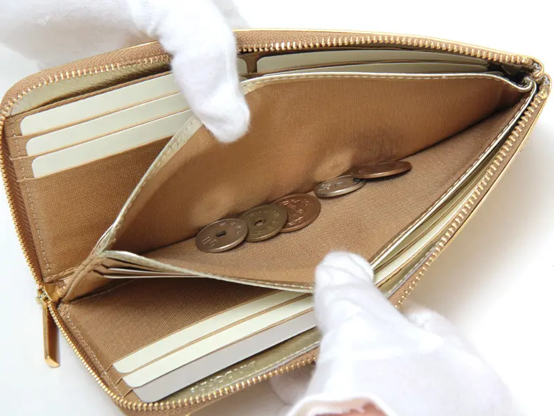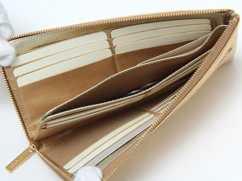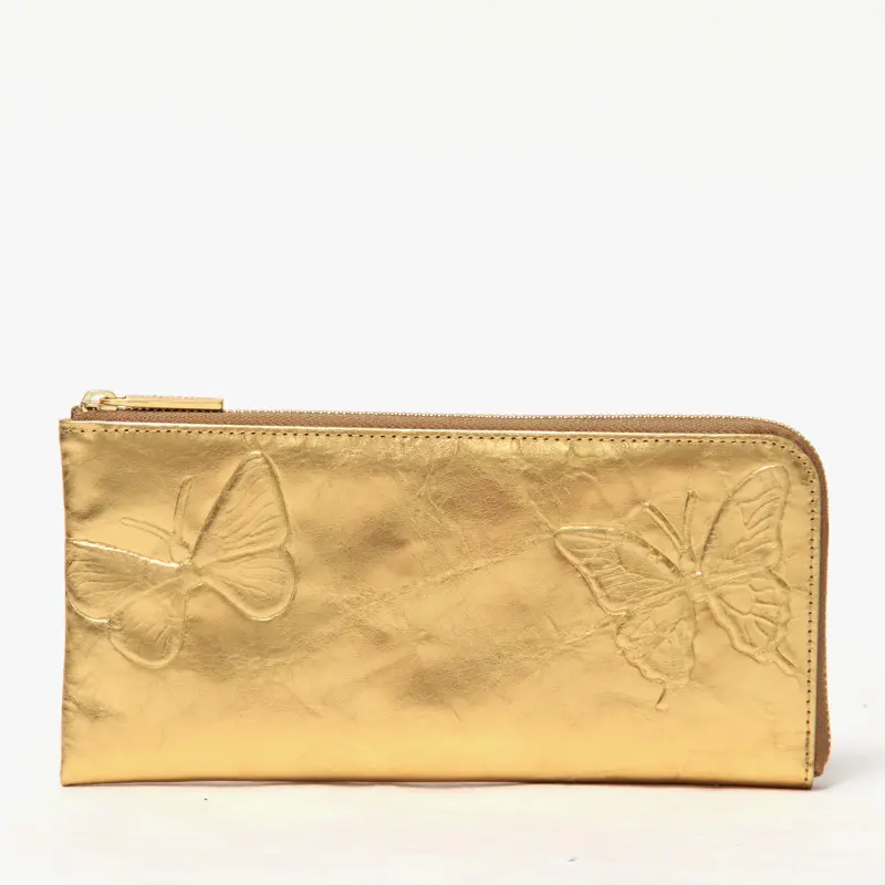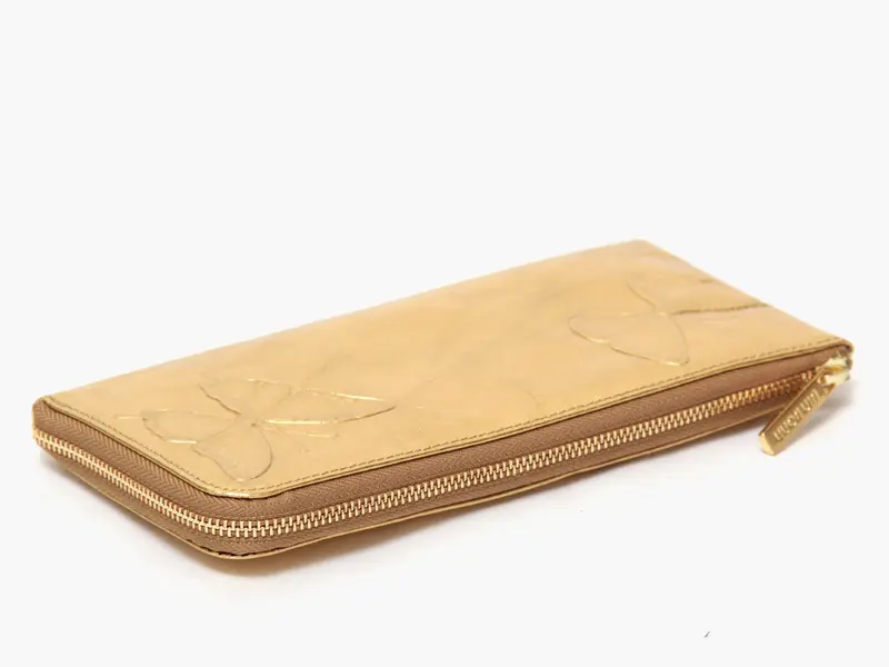 VIA DOAN ヴィアドアン DOLCE SHINE 蝶々 L字ファスナー 長財布 ゴールド