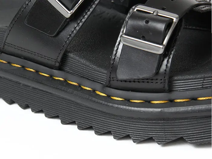 ドクターマーチンならではのボリュームソールと、無骨なバックルストラップが印象的な「MYLES(マイルス)」。一見ハードに見えて、足元にしっかりとフィットする2本のストラップが安定感を生み、履き心地は想像以上に快適。アッパーには上質なBRANDOレザーを使用し、履くほどに味わい深くなります。