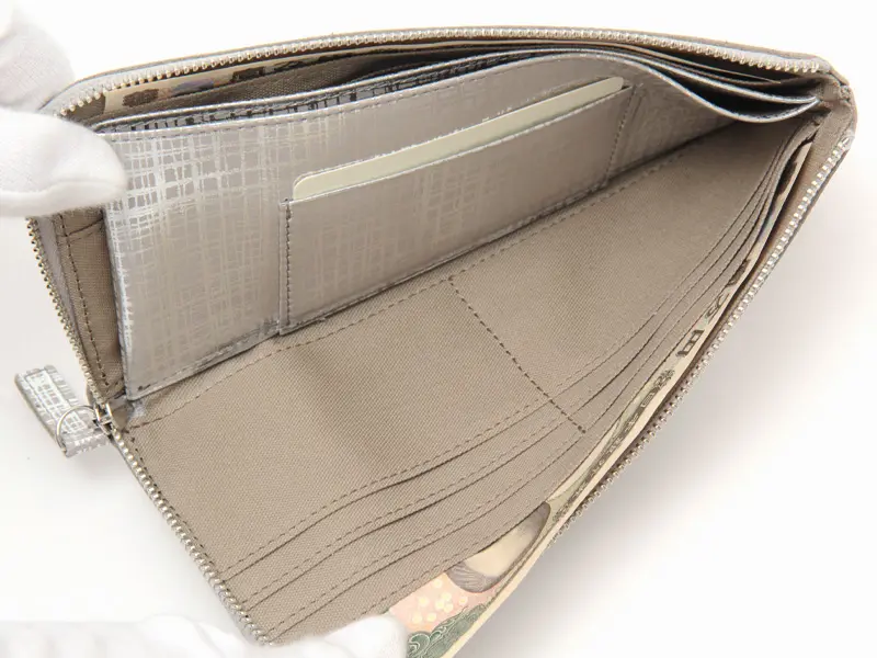 L字ファスナーを開けると、カードポケット・小銭入れ・お札スペースが一目で見渡せる設計に。スムーズにお会計できる、使いやすさが魅力のデザインです。