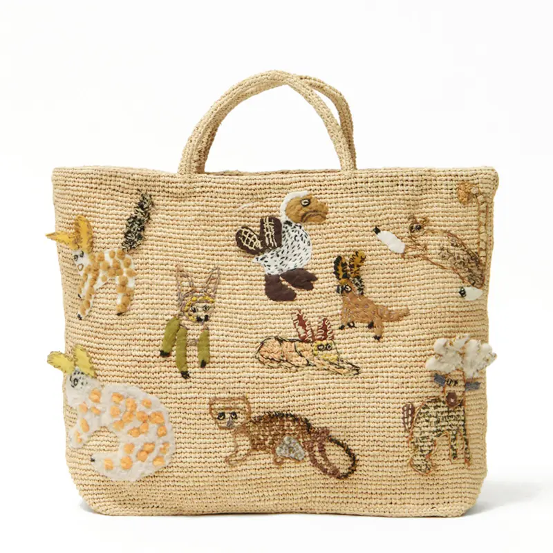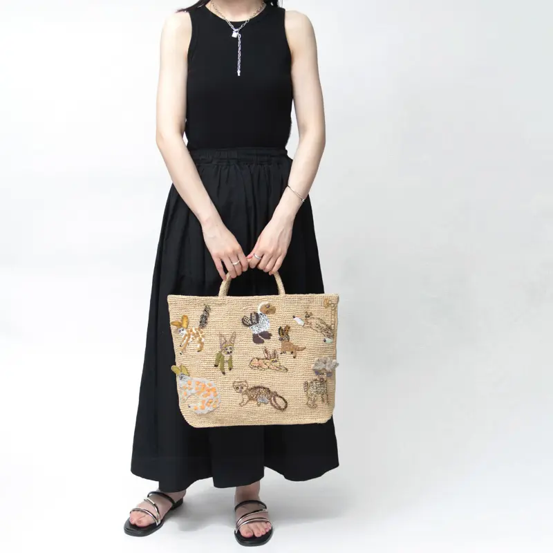 動物たちの個性豊かな刺繍が可愛らしい"ソフィーディガール Sophie Digard"のラフィアバッグ。ひとつとして同じ表情のない手刺繍は、見るたびに心を和ませてくれます。A4サイズがゆったりと収まる大きめのサイズ感でたっぷり荷物が収まります。アートのような存在感で洗練された佇まいが、夏の装いを格上げしてくれること間違いなしです。
