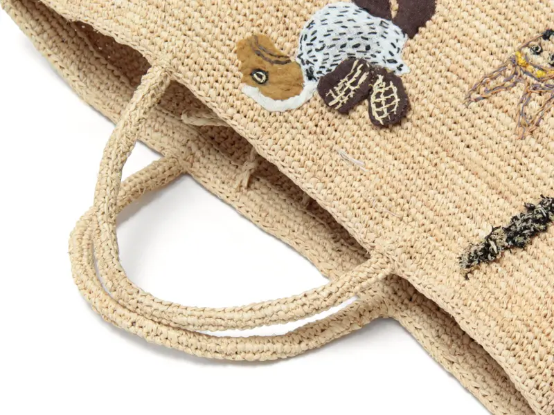 かぎ編みのラフィアにトリやトナカイなどのモチーフが施されたトート型のかごバッグ。短めのハンドルは腕に掛けたり、手持ちでバランスよくお持ちいただけます。アートのような存在感で、いつもの装いに洗練された華やかさをプラスしてくれます。大人が持つからこそオシャレが完成する個性的なデザインが魅力です。