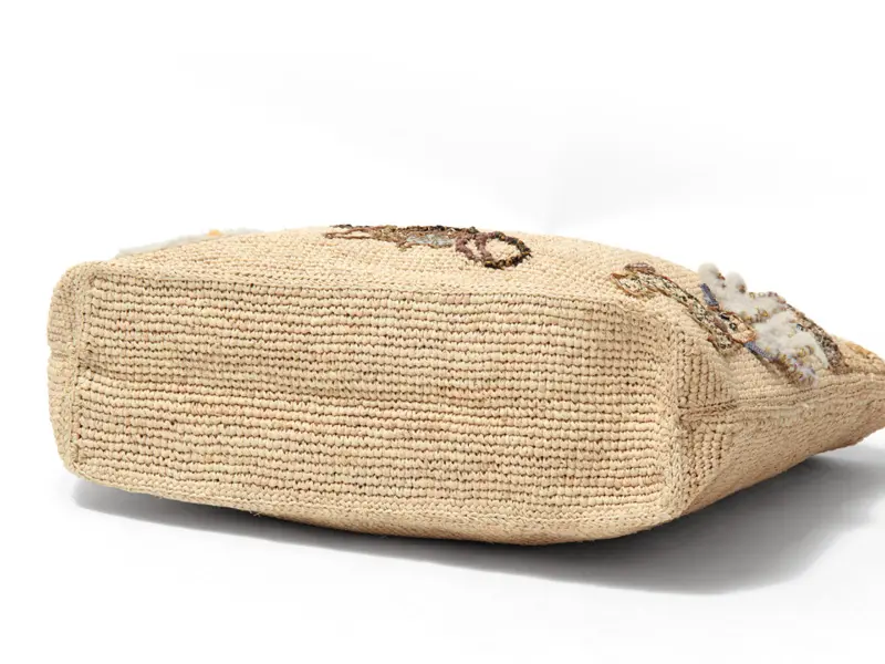 ラフィアを丁寧に編んだハンドメイドの温もり感じるカゴバッグ。正面・背面・底面の境目、ハンドル、裏面に至るまで継ぎ目を感じさせない網目の美しさ。刺繍は生地などを使い、立体感も演出。同じデザインでもひとつとして同じものがない手作業による芸術的な逸品です。