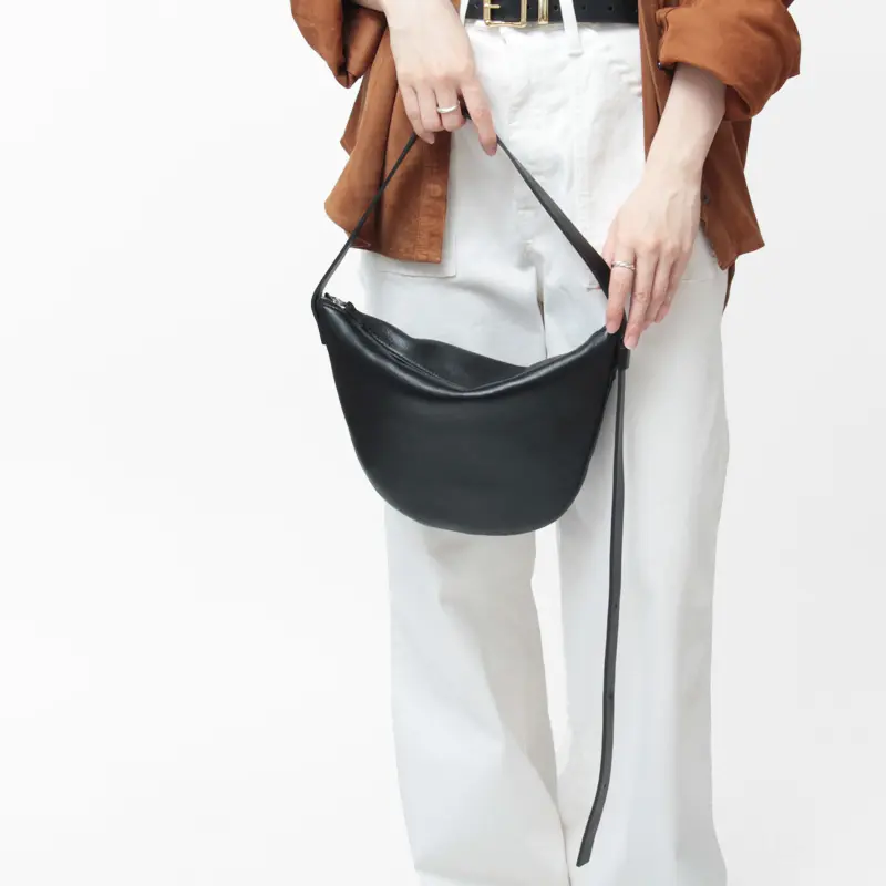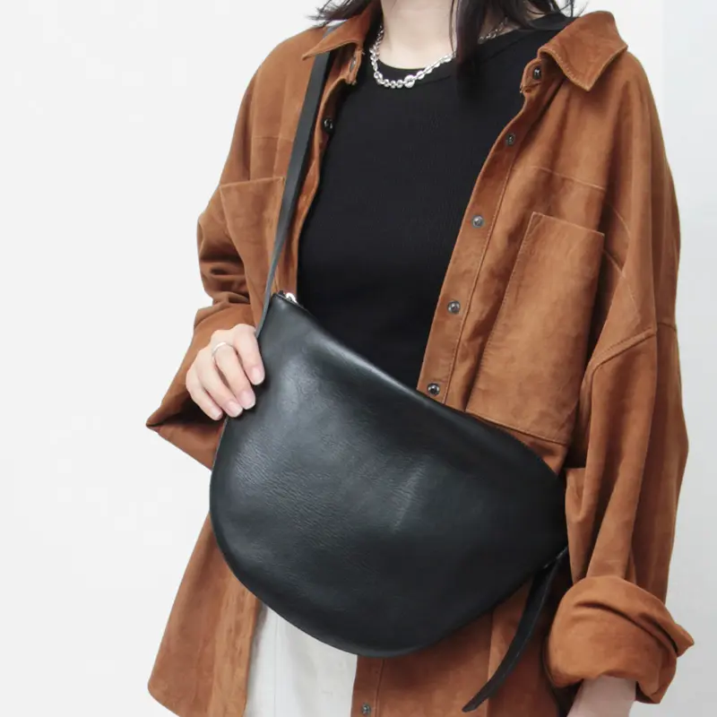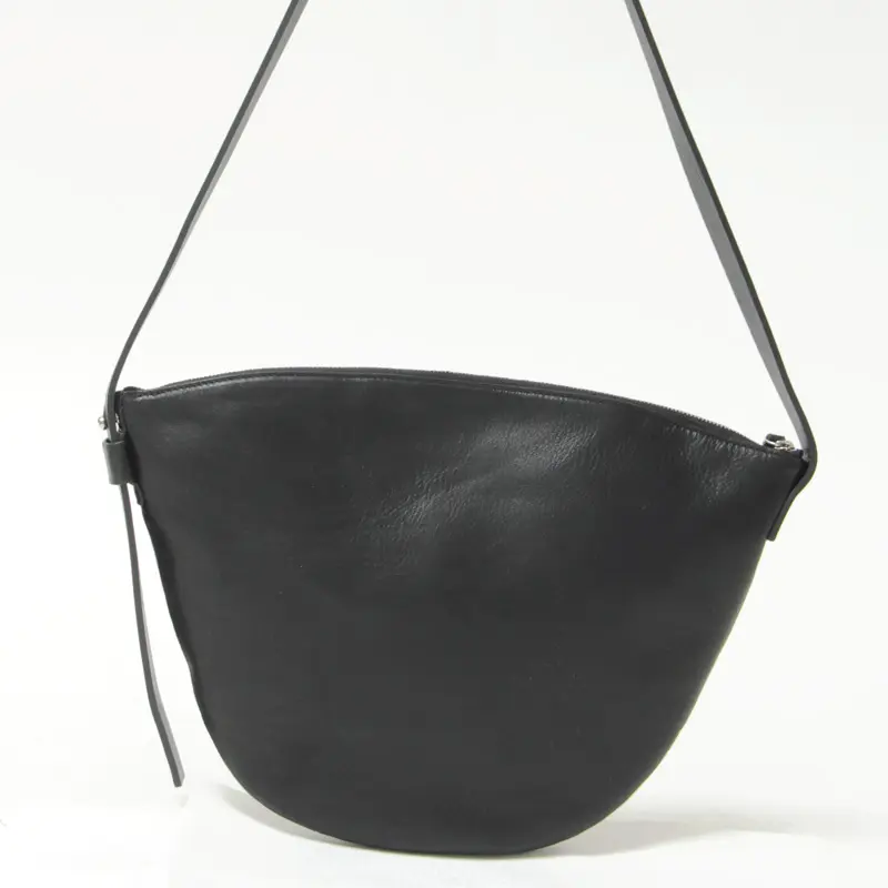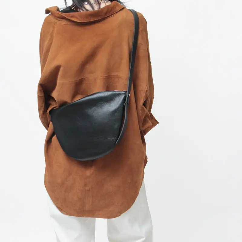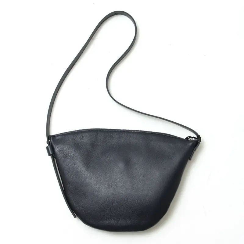 曲線のボディに金具やステッチワークを極力見せず、ミニマムな印象のレザーバッグ。キレイめスタイルにもフィットする上質なアイテムです。カジュアル過ぎないデザインで、コーディネイトにひとつ取り入れるだけでこなれた雰囲気に。