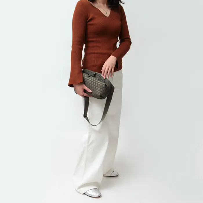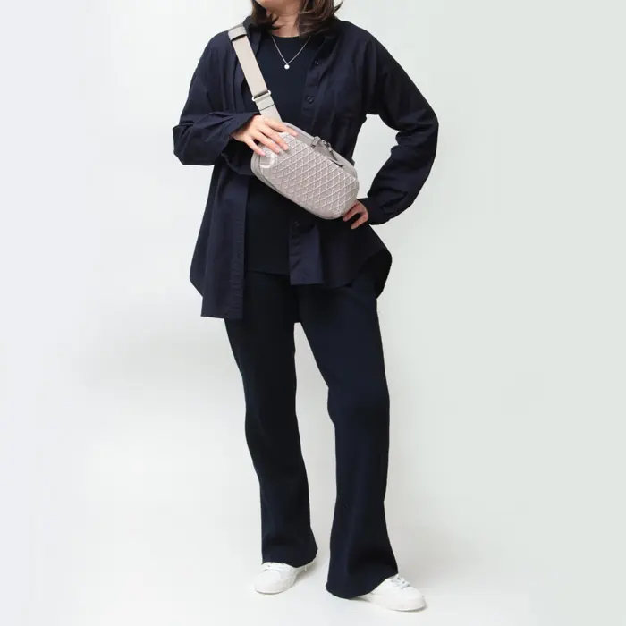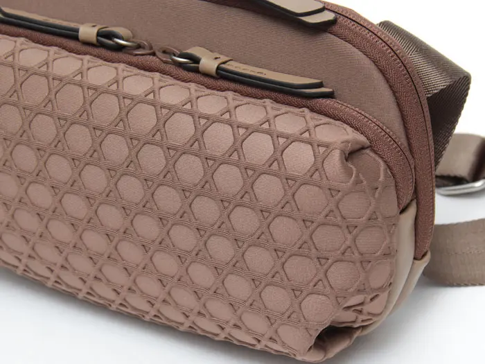 篭目柄の表情豊かなボディバッグは、男女問わず使えるジェンダーレスなデザインで、ジャケットスタイルやカジュアルにもマッチし、身軽なお出かけが楽しめるちょっとスポーティなテイスト。両手が自由になるクロスボディスタイルは、ショッピングや旅行、自転車通勤などアクティブなシーンで活躍します。