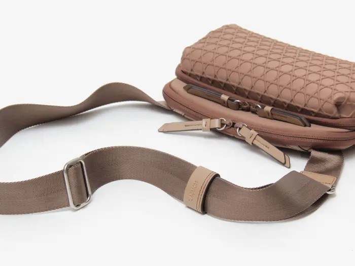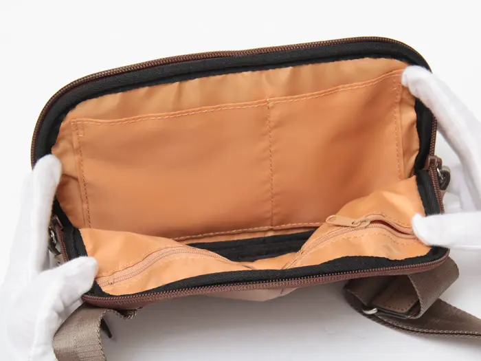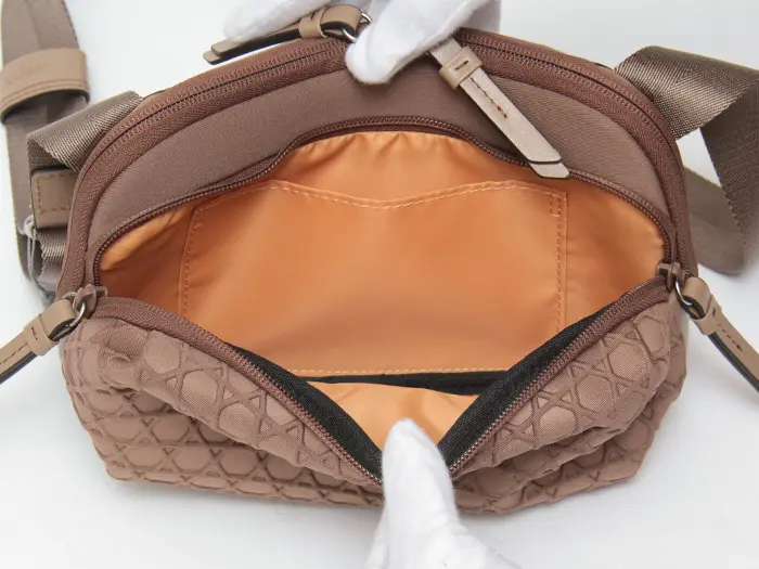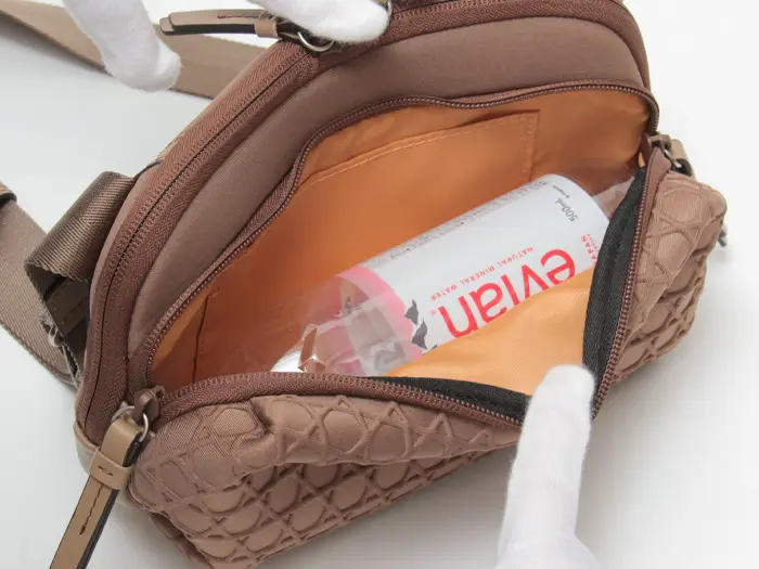 ショルダー紐はスライダーで長さを調節できます。滑らかな素材によりスムーズに調整でき、厚手の上着の季節でもゆったり斜め掛けできます。ショルダー紐が斜めに取り付けているのでバッグが自然に体にフィットし、スッキリと持っていただけます。