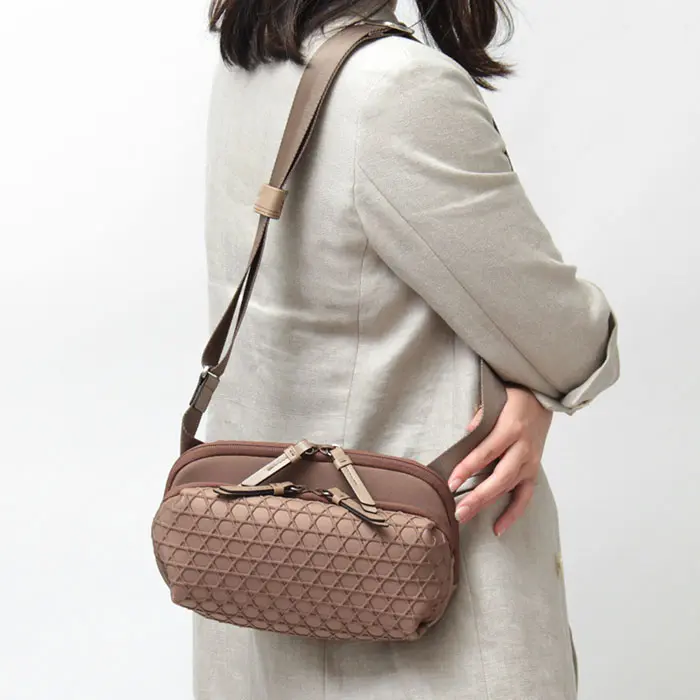 LAQUOH ラクーオ Kagome Emboss ボンディングショルダーバッグ カフェオレ