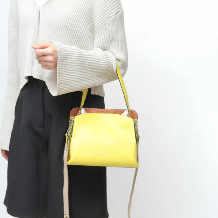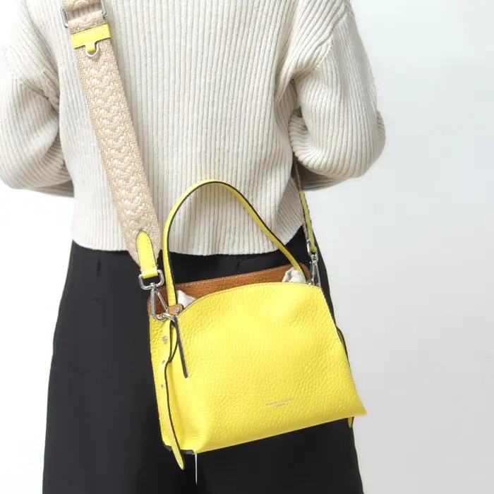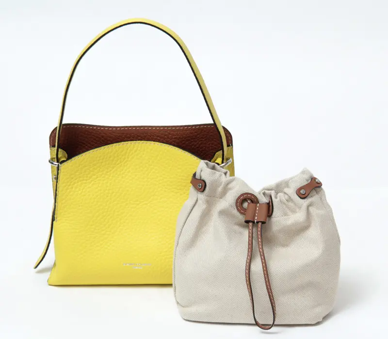 スクエアシルエットが印象的なGIANNI CHIARINI(ジャンニキアリーニ)のダブルバッグ「ASIA(アジア)」。キャンバスとレザーの異素材コンビが軽やかさをプラスし、幅広でナチュラルな風合いのショルダーストラップがアクセント。取り外し可能で、気分やスタイルに合わせてアレンジ自在。取り外し可能なショルダーストラップ付きで、手持ち・肩掛けの2WAY仕様です。