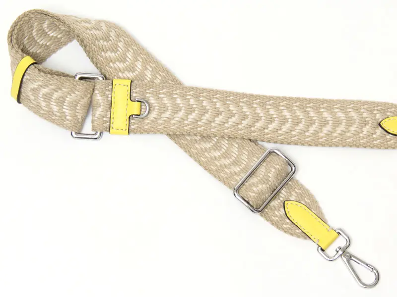 美しい配色が目を引く総柄のショルダーストラップ付き。春夏らしい軽やかな素材感と上品なカラーリングが、シンプルな装いにほどよくカジュアルなニュアンスを添えてくれます。幅が5cmと幅広タイプで、肩への負担がかかりにくく、長時間の使用でも痛くなりにくい仕様です。