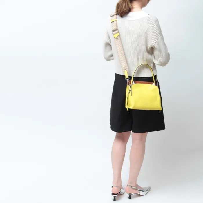 スクエアシルエットの程よい存在感が、シンプルな装いに遊び心をプラス。発色が美しいレザーが上品さを引き立て、きれいめスタイルにも自然とフィット。春夏らしい爽やかさと、さりげないモード感を両立したアイテムです。クロスボディにすれば両手が自由になり、通勤やお出かけなどアクティブなシーンでも快適にお使いいただけます。