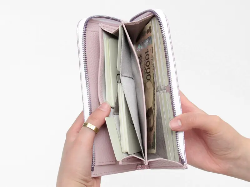 L字ファスナーで大きく開き、使いやすさにこだわったデザインです。