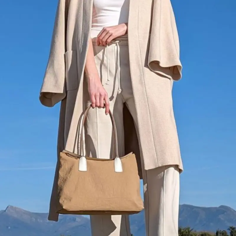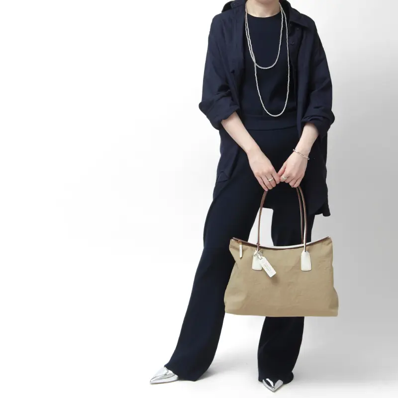 牛革×ナイロンのコンビで品よく持てるジュリエッタ38は、A4サイズが収まる実用的なサイズで、バッグ自体が軽いため、荷物をたっぷり入れても快適に持ち運べます。カジュアルからキレイめコーデにも馴染む上品なファブリックで、幅広いスタイリングにマッチする汎用性の高さが魅力です。シーンや年齢を問わず長くご愛用いただけるアイテムです。