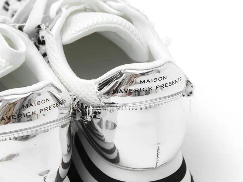 ヒール部分には、キラリと輝くメタリック素材に「MAVERICK」のロゴブランドロゴを配置し、後ろ姿まで抜かりのないデザイン。